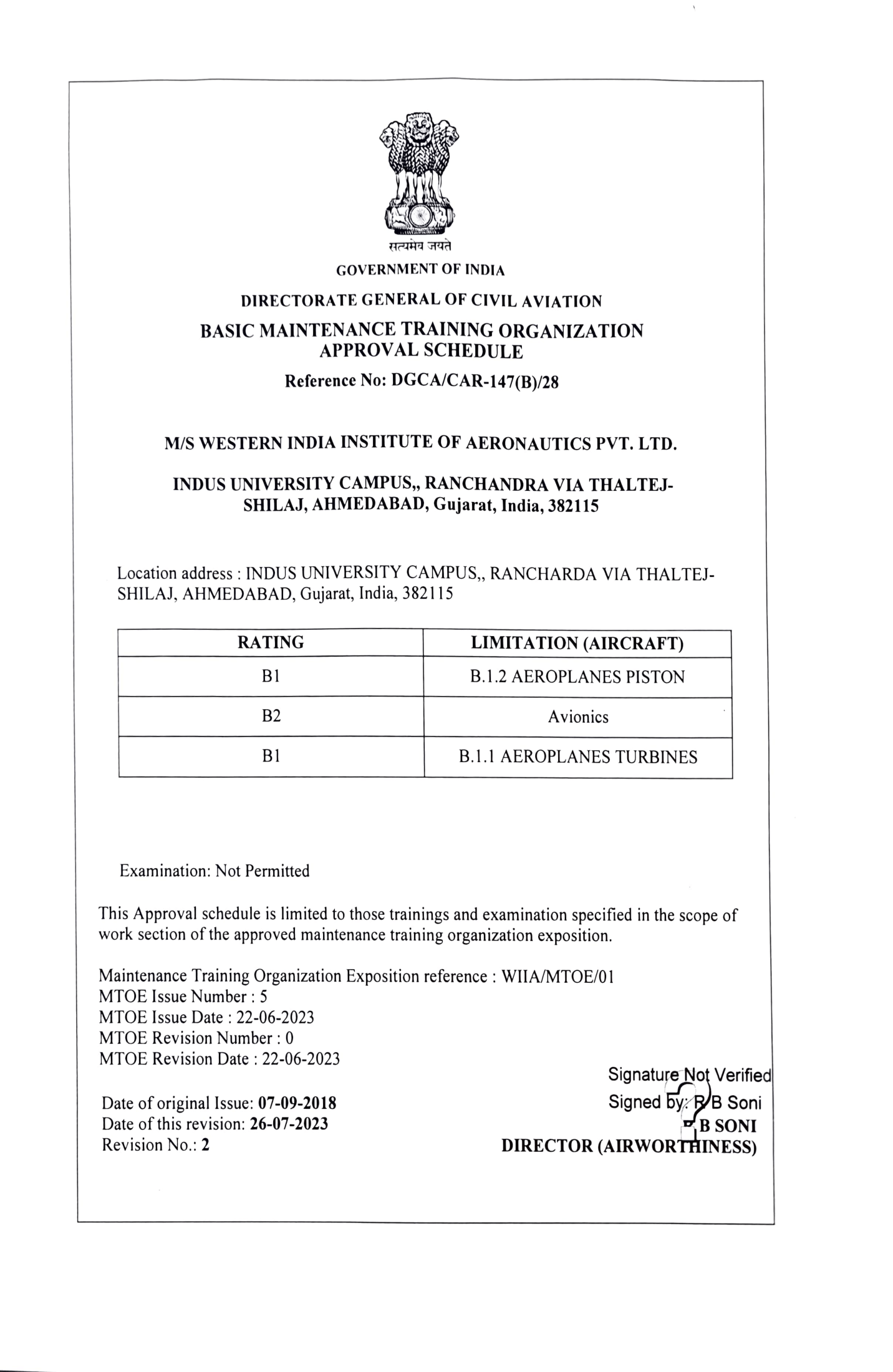 Furthermore, at the Institute of Aircraft Maintenance Engineering (WIIA), we even have Learjet-24 (Aeroplane) & Zenith CH 2000 (Aeroplane) for practical practice on actual aircraft. The course material has been developed to satisfy the Aviation Industry-standard & approved by the Director General of Civil Aviation (DGCA).