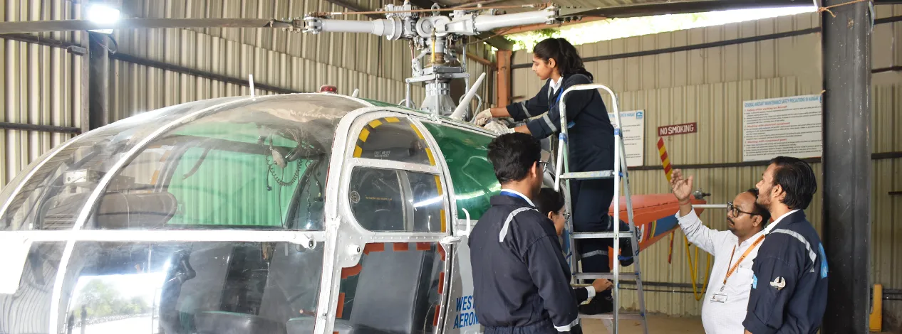 WIIA provides a balanced hands-on approach. Students complete 70% of their practical training hours on campus working directly with turbine helicopter systems. The remaining 30% is completed in an actual aircraft working environment at a DGCA-approved CAR 145 AMO.