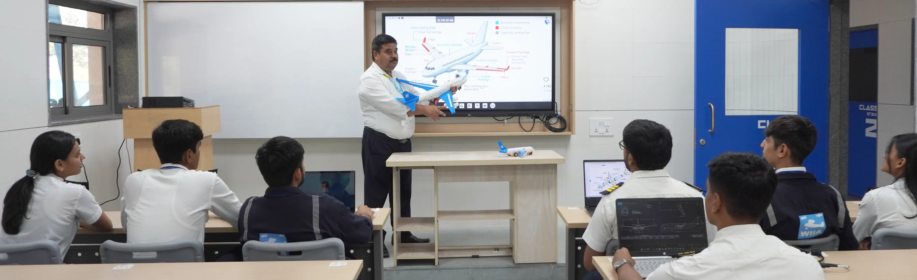 At WIIA, students receive practical training in fully equipped global-standard labs with the latest aircraft maintenance technologies and facilities. The curriculum combines theory with practical training, including field trips to key aviation sites such as Ahmedabad, Mehsana, Nagpur, Mumbai Airport, and Delhi Airport.